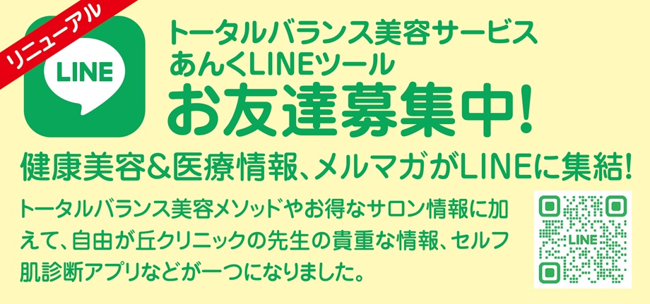今後は、上記に加えて、自由が丘クリニックドクターからの貴重な情報、セルフ肌診断アプリ、ショッピング等は出来る便利&パワーアップ情報配信アイテムになります!!